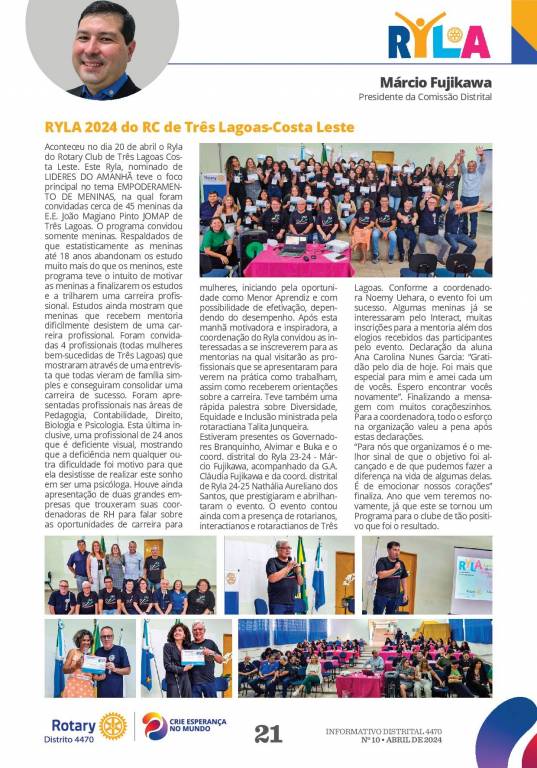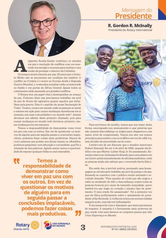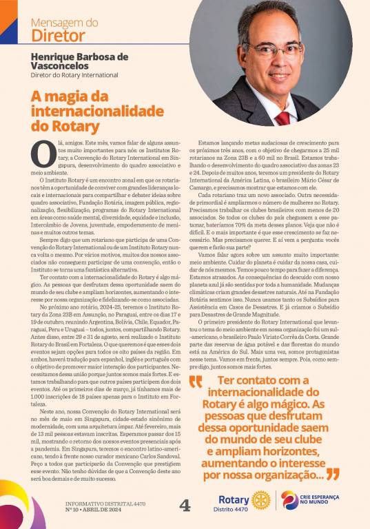 Informativo Rotário de ABRIL/2024 - Numero 10 - Carta Mensal